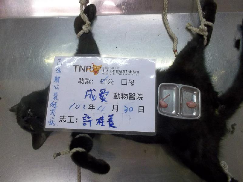 兩隻六七個月的未成年公貓跟著母貓流浪在某公寓的垃圾場,但此公寓之住戶對浪貓極討厭,因其地下停車場為開放式,浪貓會跑入地下室抓刮住戶車子,已有部份住戶向管委會投訴並意圖想用毒貓方式,幸好一樓有位愛心住戶會餵養浪貓,但也只能偷偷摸摸的,故先進行節育以控制繁殖!且一併施打公費狂犬疫苗