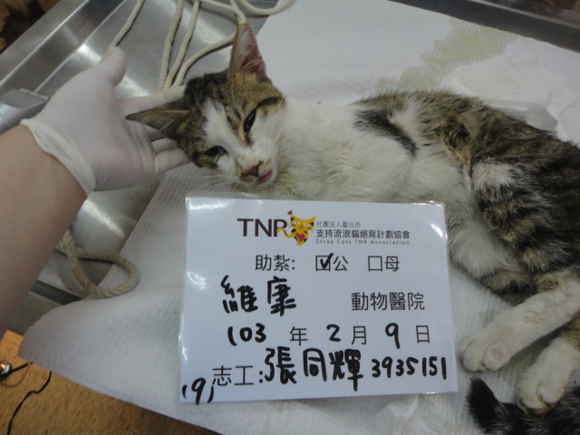 花色: 虎斑+白 誘捕地點: 不明