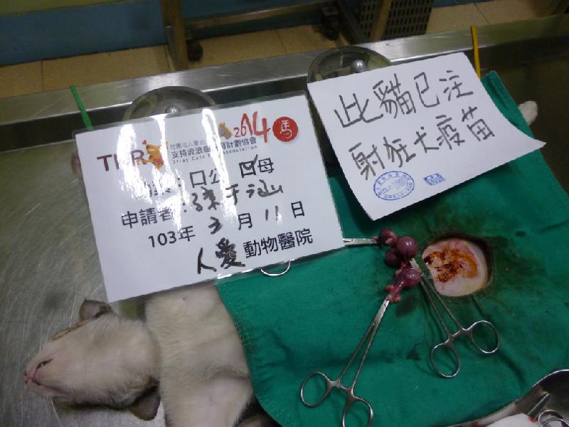 結紮醫院: 人愛動物醫院 結紮費用: 1200