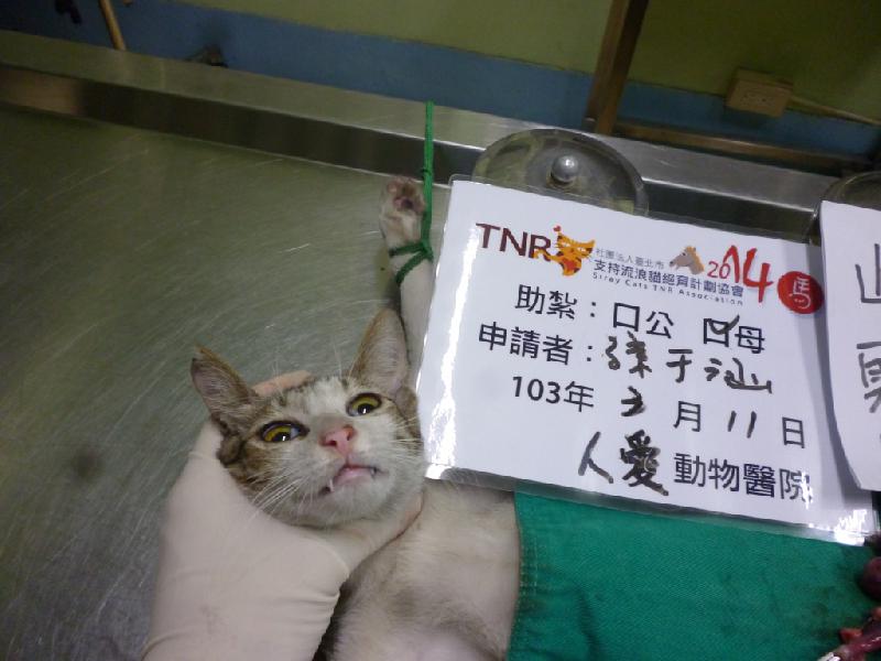 花色: 白底虎斑 誘捕地點: 高雄市林森一路,長明街周邊(340巷)