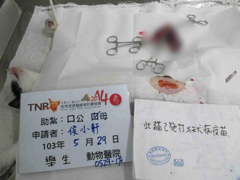 結紮醫院: 樂生動物醫院 結紮費用: 1200