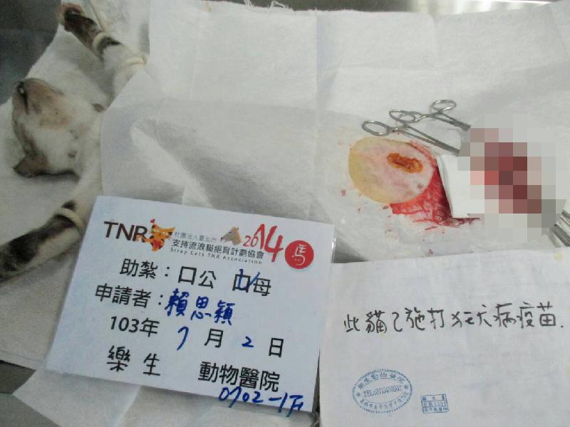 結紮醫院: 樂生動物醫院 結紮費用: 1200