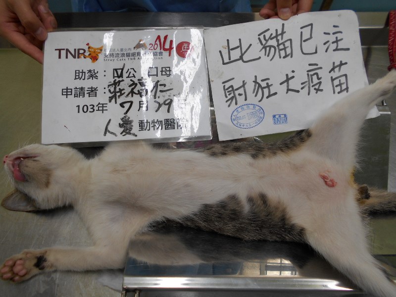 結紮醫院: 人愛動物醫院 結紮費用: 700