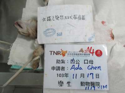 結紮醫院: 樂生動物醫院 結紮費用: 700