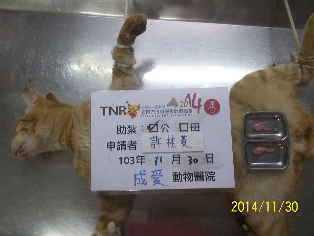 結紮醫院: 成愛動物醫院 結紮費用: 1000