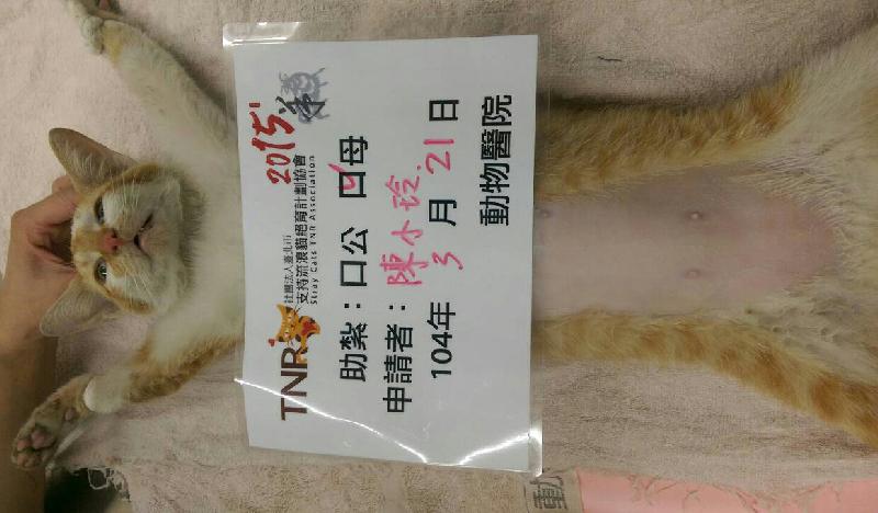 花色: 橘白 誘捕地點: 嘉義市