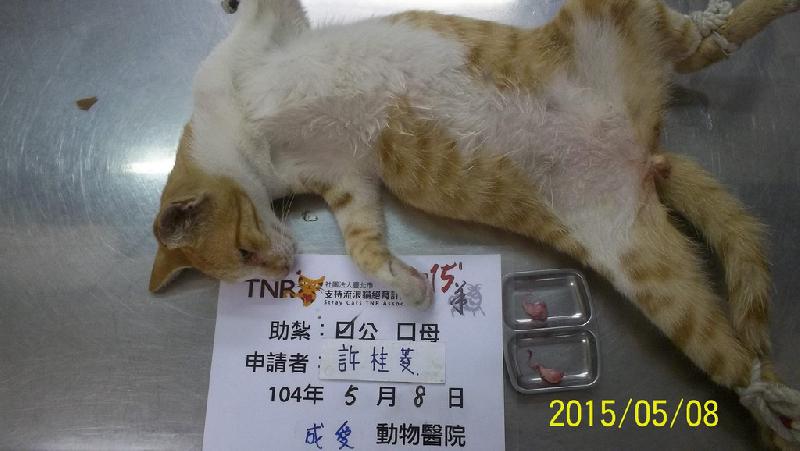 結紮醫院: 成愛動物醫院 結紮費用: 1000