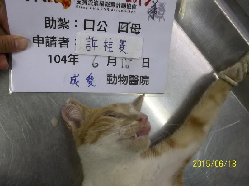 結紮醫院: 成愛動物醫院 結紮費用: 1500