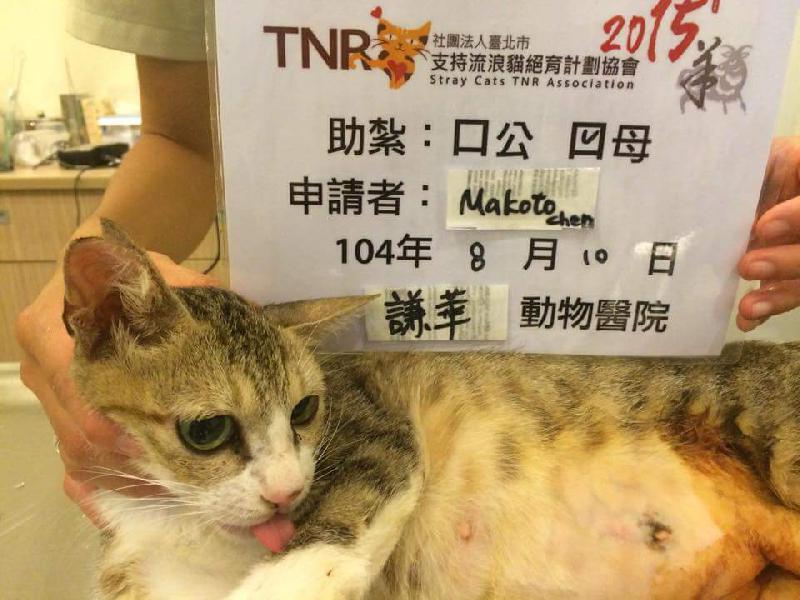 誘捕者暱稱: Makoto Chen 性別: 母 花色: 虎斑 誘捕地點: 新竹市北大路 結紮醫院: 謙華動物醫院 結紮費用: 1500 助紮者: 已付款:Yen-Chix5 額外醫療費用申請: 特別說明與誘捕心情: 這隻虎斑媽媽在餵養區生活了非常久,也生了非常多胎,但是存活率非常低,往往還沒長大就消失了,而沒有結紮的他也只能被迫的一直生無法長大的小生命,加深了一定要抓到他結紮的決心,這次他又生小寶寶,而在確認剛生完的小孩都去當小天使後,趕緊抓來結紮,因為在外流浪緣故,耳朵有打架受傷類似結紮的記號,但可惜不是我們TNR的符號,這次的剪耳是脫離苦海的象徵,終結發情懷孕的循環,從此安穩過生活。結紮費用還請大家幫忙,謝謝