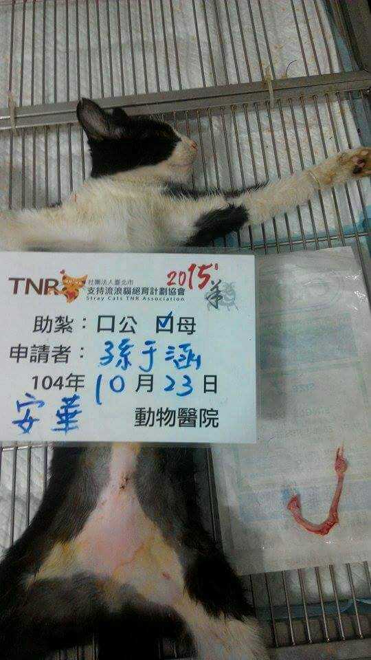 結紮醫院: 安華動物醫院 結紮費用: 1200