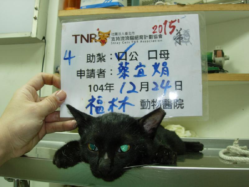 誘捕者暱稱: xcatx 性別: 公 花色: 黑 誘捕地點: 中和動物之家 結紮醫院: 福林動物醫院 結紮費用: 800 助紮者: 已付款:a-songx3 額外醫療費用申請: 特別說明與誘捕心情: 12/24 中和動物之家帶出9隻貓咪