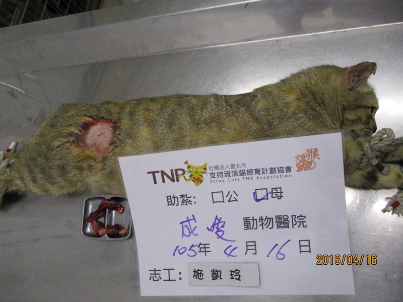 結紮醫院: 成愛動物醫院 結紮費用: 1500