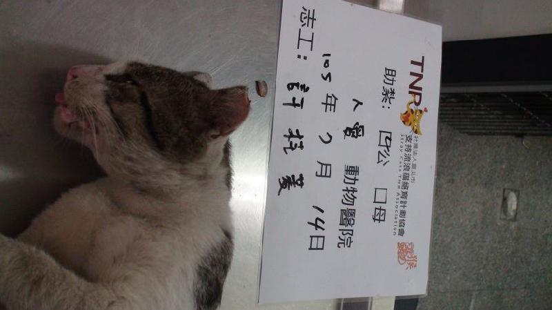 花色: 白底虎斑 誘捕地點: 鹿港鎮後車巷