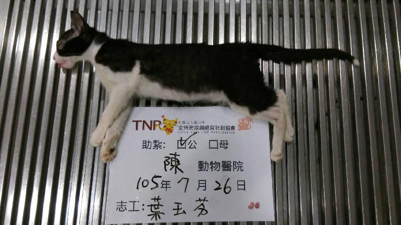 誘捕者暱稱: 葉玉芬 性別: 公 花色: 黑白 誘捕地點: 桃園市楊梅區治平高中 結紮醫院: 陳獸醫院 結紮費用: 1000 助紮者: 已付款:Michellex4 額外醫療費用申請: 特別說明與誘捕心情: 治平高中裡有10幾隻大大小小的貓咪,有愛心人士固定在餵養,當中幾隻母貓已經生過幾胎了,貓口不斷在增加,餵養的愛心人士終於發出求助訊息,希望能幫這裡的貓咪們結紮,控制貓口數量,才能讓浪貓們獲得更好的生活品質。因為貓咪所在位置是在學校裡面,不少人會因為擔心環境衛生的問題,而出現反對餵養的聲浪,愛心人士承受不少壓力,為了保護貓咪,給予承諾會維持環境整潔,也會幫貓咪結紮控制貓口,才得以讓貓咪繼續在這裡生活。接下來我陸續會幫忙誘捕貓咪送去結紮,責無旁貸。