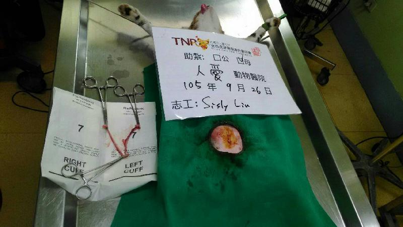 結紮醫院: 人愛動物醫院 結紮費用: 1200