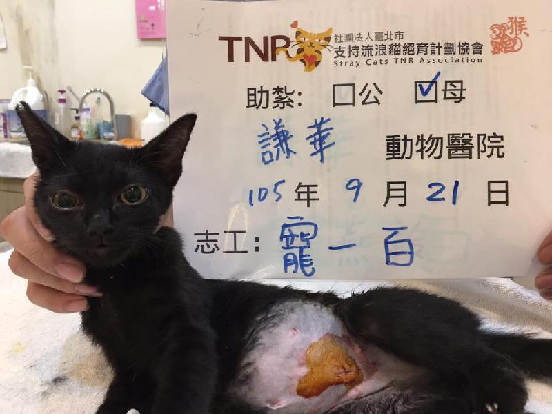 透過協會從竹北收容所帶出來的黑色母貓.已完成絕育目前放養至安全餵養區.絕育費用還請大家多幫忙~讓協會能做更多的事