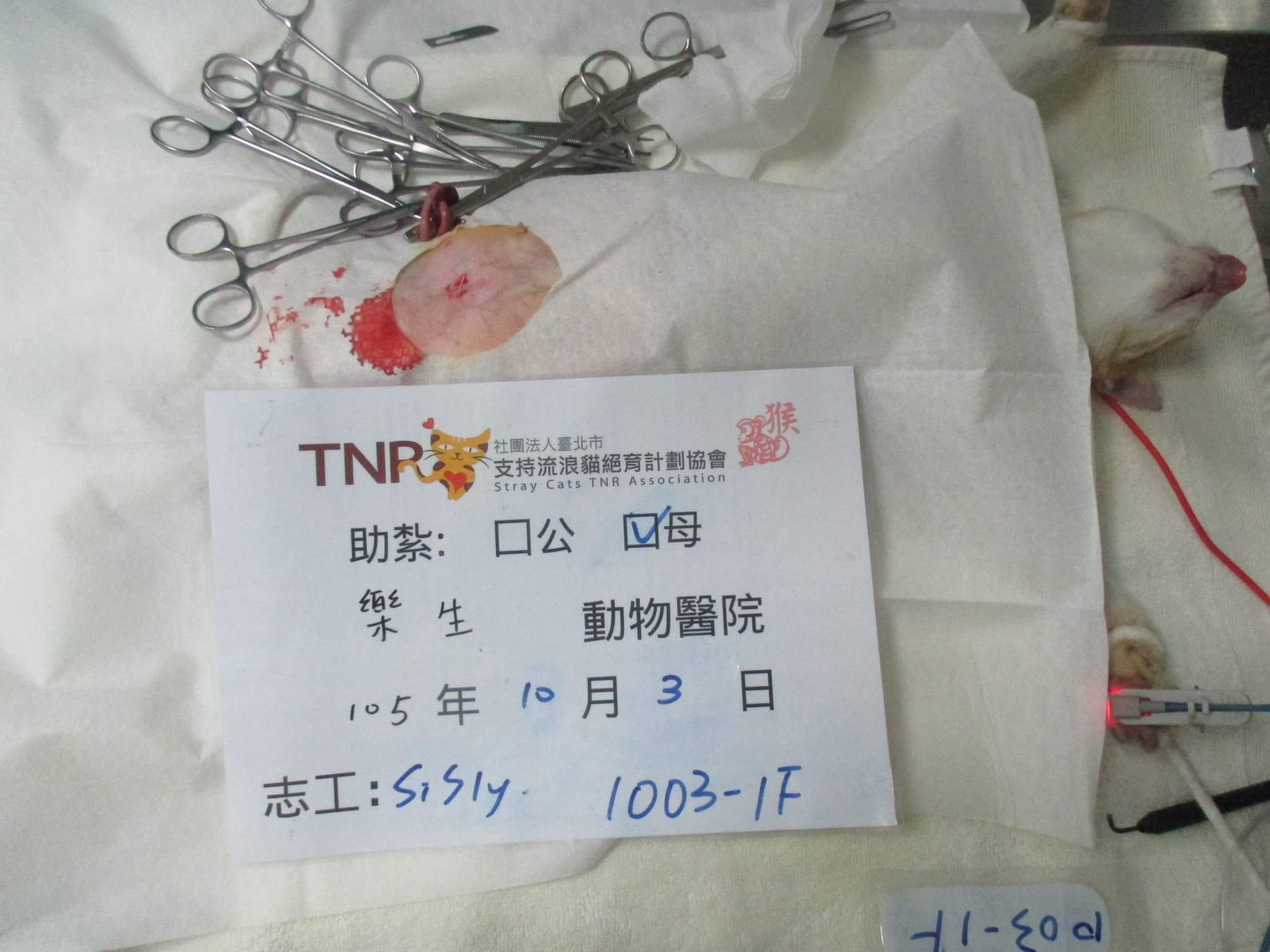 結紮醫院: 樂生動物醫院 結紮費用: 1200