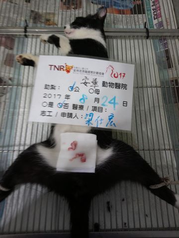 誘捕者暱稱: 梁仕宏 性別: 公 花色: 賓士 誘捕地點: 高雄市大寮區鳳林四路 結紮醫院: 安華動物醫院 結紮費用: 700 助紮者: 已付款:Kuo Weix3 額外醫療費用申請: 特別說明與誘捕心情: 大寮專案申請過後,由於颱風影響,天氣都不太穩定,於是在颱風過後約了朋友1人,帶著一誘捕籠及外出籠到大寮自助餐店來抓紮,到了以後禮貌性跟老闆娘打了招呼,剛好店家也結束晚餐時段工作在收尾,也和我們聊了一下這些貓咪的狀況,這些貓咪店家都有在餵食,也曾紮過兩隻,不過因為鄰近市場,貓咪繁殖的速度也快,所以目前這區域就約有10來隻,而我先前場勘時大概有看到5隻,所以數量上還有點差距,不過老闆娘也表示願意出點力幫忙,我想先抓紮,如果超過申請數量的話,再請老闆娘自費幾隻及再向協會申請。