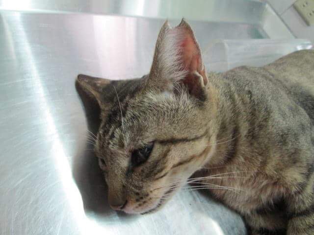 兇巴巴虎斑在屏東市中華路上1段時間了,看起來兇其實很膽小,在店家附近生活1段時間後,才稍卸下心房讓店家成功誘捕,7/13送至愛生醫院,3日後原放,謝謝醫生,謝謝協會更謝謝捐助人。