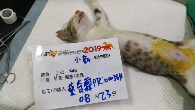 誘捕者暱稱: 蔡奇霖 性別: 母 花色: 虎斑白底 誘捕地點: 仁武區仁心路 結紮醫院: 小新動物醫院 結紮費用: 1100 助紮者: 已付款:Miaotogox1, 李孟桓x2, Alicex1 額外醫療費用申請: 特別說明與誘捕心情: 蘇小姐是兩位很有愛心的表姊妹~~剛搬過去半年~~發現當地有幾戶低調的人在餵養甚至廚餘~但卻沒結紮~兩位表姊妹開始餵養有幾隻會跑來討食的貓咪也乾淨餵食~卻也不時跟幾戶不友善的住戶常吵架~~