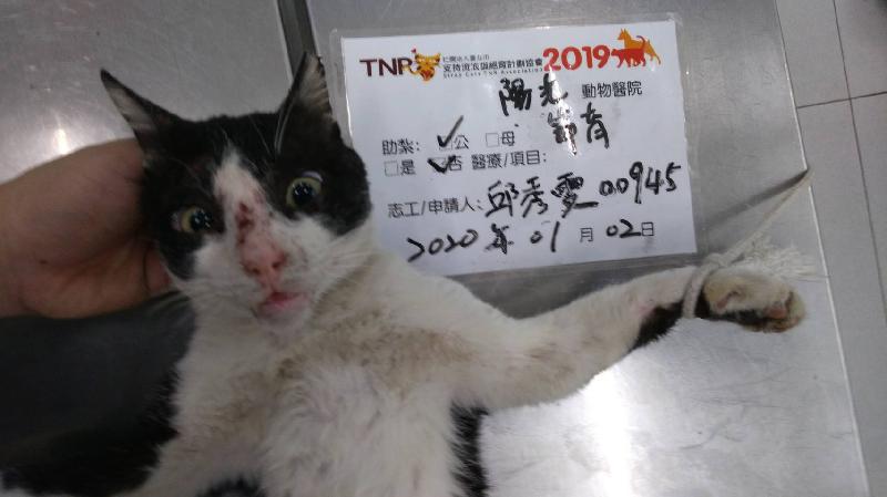 花色: 黑白賓士貓 誘捕地點: 高雄市茄萣區