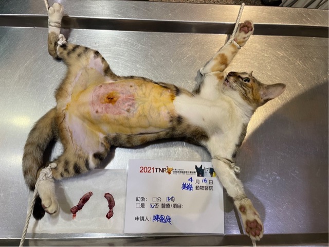 誘捕時剛好遇到學校裡的人說這隻貓前一陣子在學校生了小孩但都沒有活下來