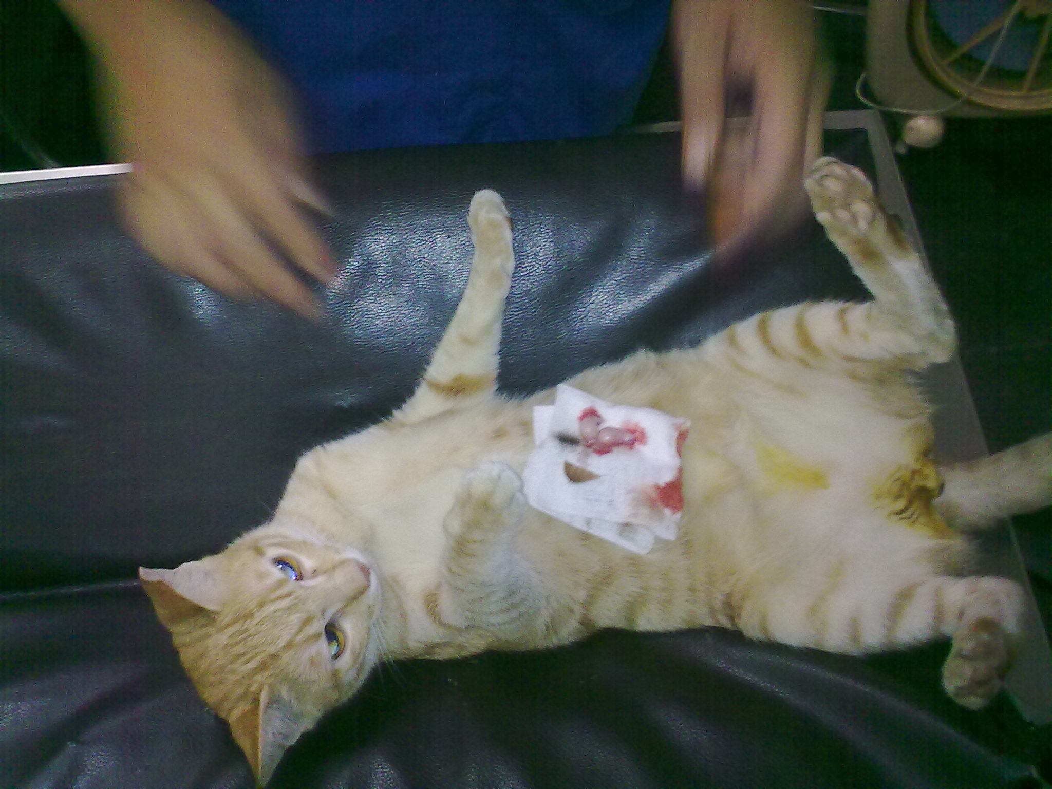 今天冷颼颼的~本來要抓一對兄弟卻跑來大橘~正好也沒結紮~算他幸運^^