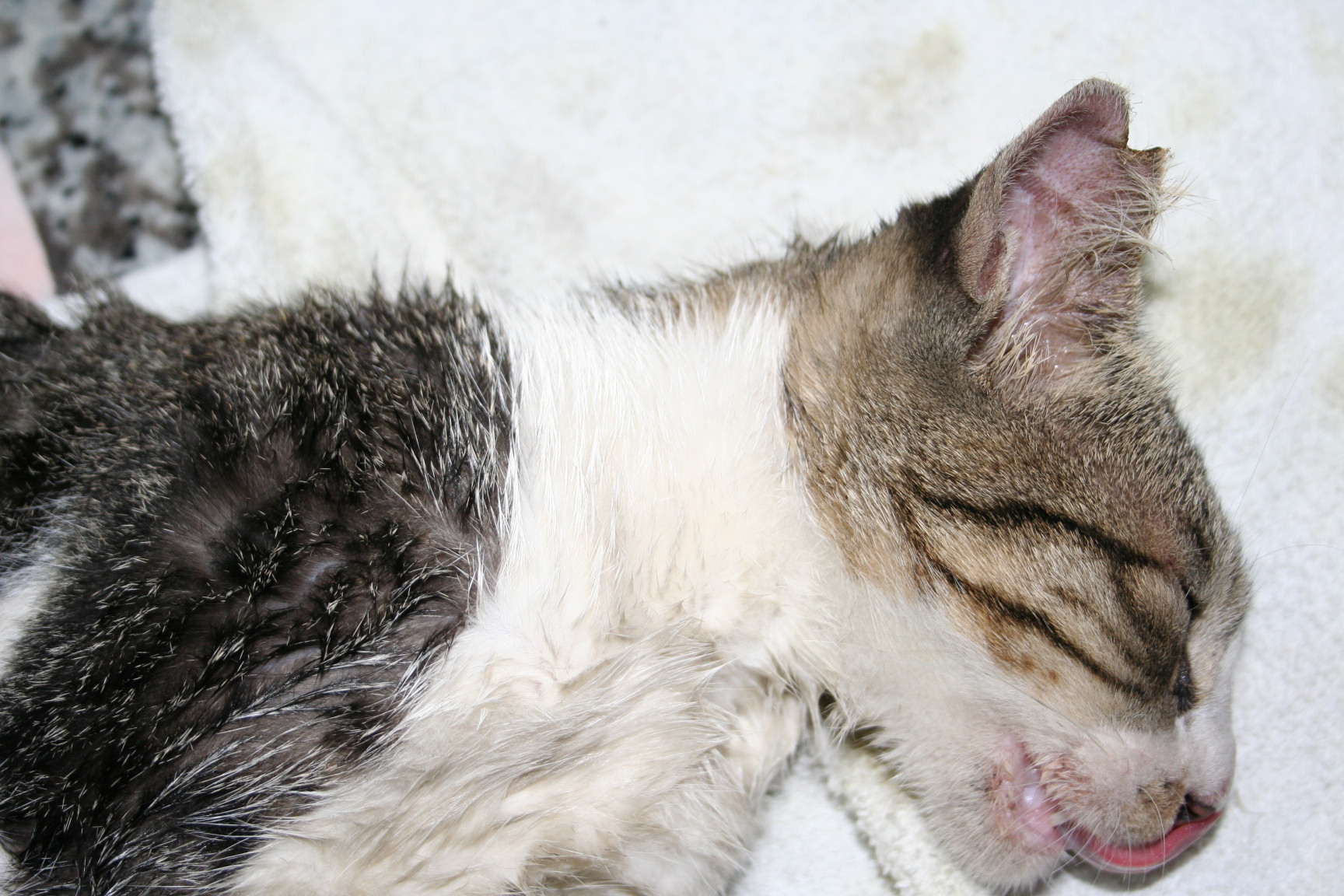 屈臣氏附近有位阿桑固定餵養一大群貓群.只想單純餵養.對結紮興趣缺缺...導致貓群過多...因是小巷.過往車輛往往看不到貓咪..愛媽之前曾撿過被車輛撞飛的懷孕母貓..還當場從子宮裡撈出小貓咪~最近愛媽發現之前結紮的貓咪死掉好多隻.懷疑有人在毒貓...只能把結紮速度加快.盡量減少貓咪再繼續增加...