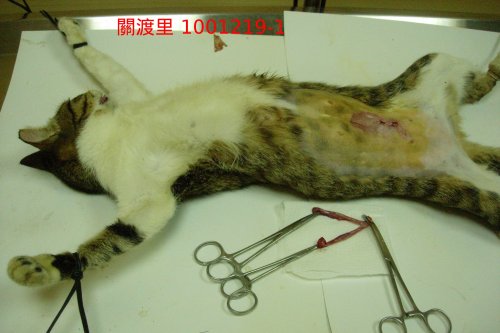 誘捕者暱稱: Akimasa Tu 性別: 母 花色: 白肚虎斑 誘捕地點: 台北市關渡里 結紮醫院: 昌展動物醫院 結紮費用: 1350 助紮者: 已付款:王法法 額外醫療費用申請: 特別說明與誘捕心情: 住關渡宮附近的愛媽游小姐,因接近河邊,又有公園及山坡,常有人帶貓狗到那附近丟棄,他也餵養他家周邊的一些流浪貓,但越餵貓越多,約一個月前經由其他愛媽介紹,與我聯絡,想幫貓結紮,請我幫忙,我詢問他看有沒有辨法自己抓貓送紮,他說試試看,結果過了約一個月後,游愛媽又打電話給我,說他借了一個大雞籠要抓貓,放在貓常休息的地方,讓貓進去休息,過幾天後又打電話來,說貓都會去進裡面了,但人要過去關門,貓會跑出來,我跟他說可以牽一條繩子,在遠遠的地方,貓進去後,將籠門拉上,結果在18日那天一次抓了7隻XD,共5母2公,原安排送到湖光動物醫院,但到院後才知醫院17、18、19三天下鄉結紮,趕緊打電話安排改送至昌展。