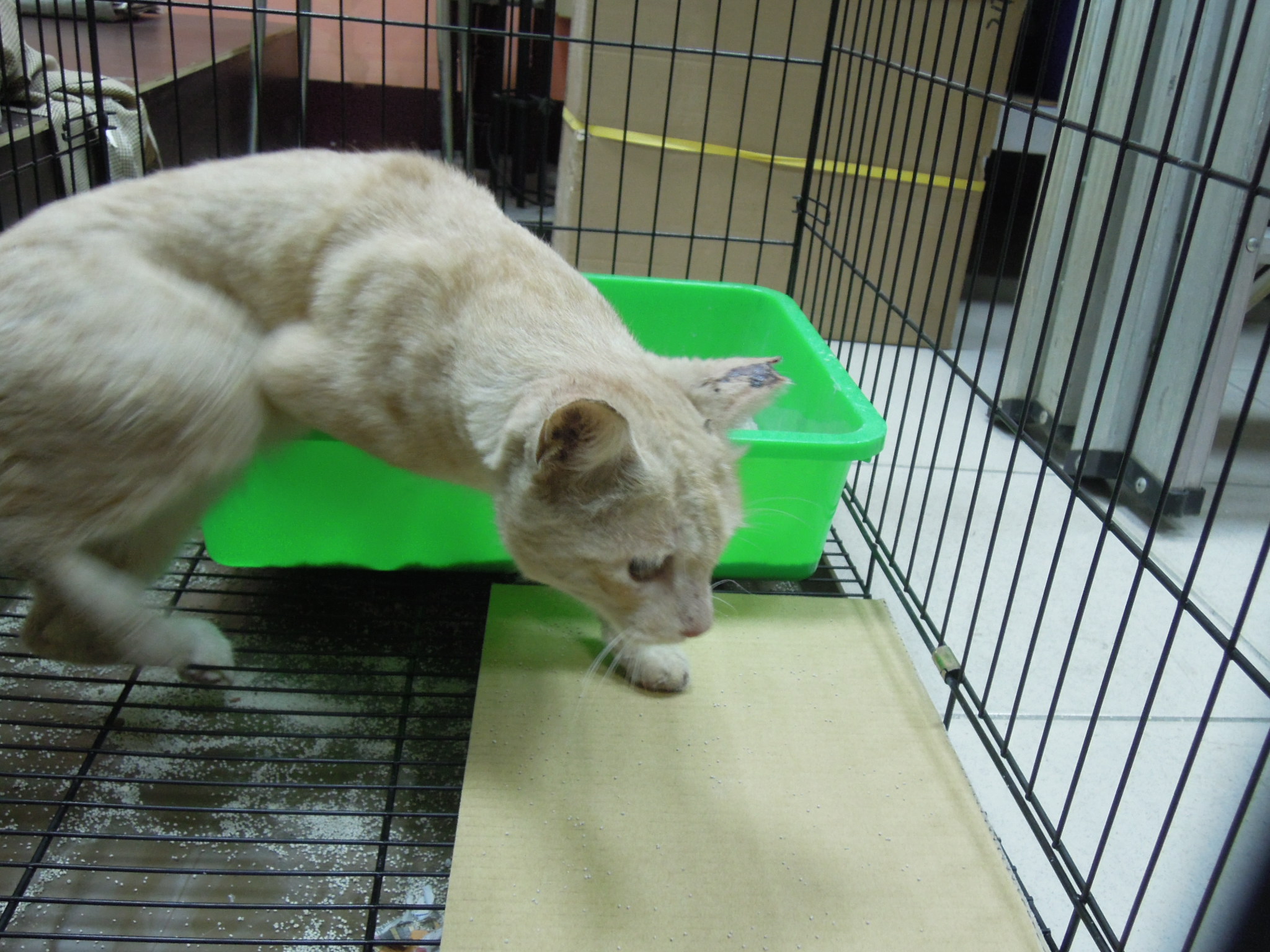 這隻公貓餵養好幾個月了~是個緊張兮兮的孩子~後來終於對人比較沒戒心了~所以開始誘捕!! 誘捕他的時候還遇到狗來亂場~"~ 所以多花了一些時間~ 不過還好誘捕成功~ 也順利結紮完畢!!
