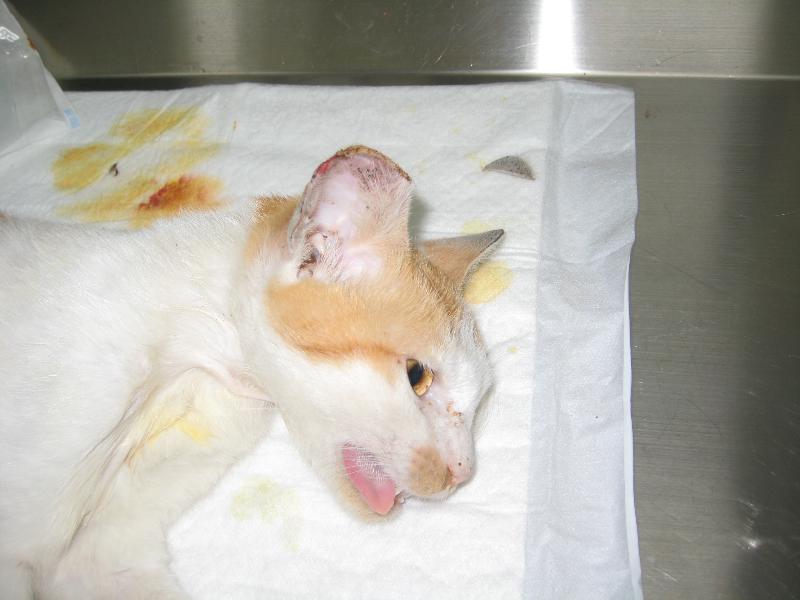心疼的是,這隻漂亮的橘母貓被檢驗出有血巴東蟲,讓發現的志工好難過...