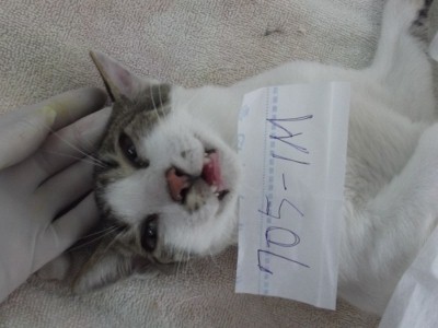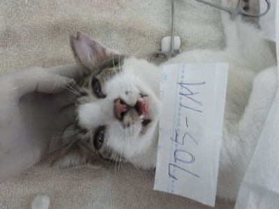 這兩隻喵喵誘捕到已經很晚了, 非常感謝醫生體諒有些地點誘捕貓咪會比較晚, 10點多還等我抓到貓過去. 順利將喵喵結紮. <705-1M>