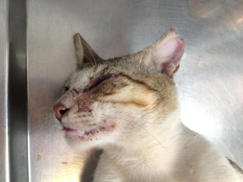 這是餵食區很難碰到的孩子,每每都在半夜以後才會出現,臉上掛著彩,肯定又是打架受傷造成的,還記得第一次碰到牠時正在翻著垃圾回收車,搜尋食物,看著心都酸了起來,很幸運的這次夜巡終於能找到機會誘捕送醫...