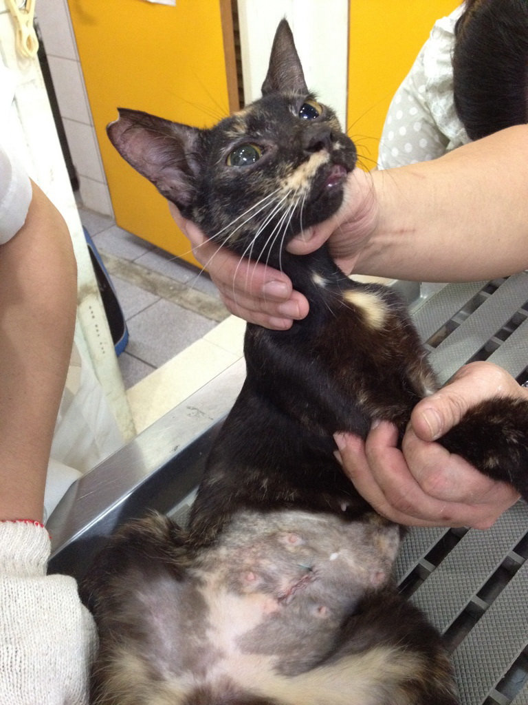 誘捕者暱稱: 迷糊姿 性別: 母 花色: 玳瑁 誘捕地點: 花蓮縣溪口村 結紮醫院: 建國動物診所 結紮費用: 1350 助紮者: 已付款:Amber Changx1, Ailin Wangx1, 蝸牛x1, 豆敏仁x2 額外醫療費用申請: 特別說明與誘捕心情: 這是花蓮縣溪口村一對夫妻通報的.因為往返要近2個小時.志工還是硬著頭皮去了.去了才發現年近80的老夫妻.長期在餵附近的浪貓.每個月光是飼料都要2-3包.本身的收入並不多.而且當地居民也沒有結紮的觀念.再加上都抓不到.抓得到的親人的.老夫妻都已經抓去結紮了.於是幫忙年事已高的老夫妻誘捕浪貓.別讓量再增加了.也希望大家能幫忙出結紮的費用.謝謝~