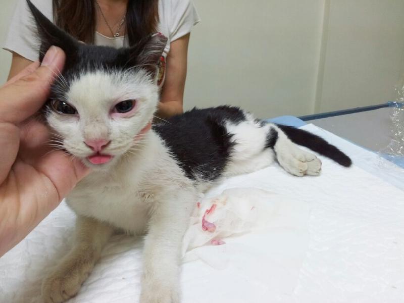 平時餵養的的浪浪母帶子中的孩子,原本以為只有貓媽跟一個孩子,抓到一個孩子去紮後當晚回去又看到一隻一模一樣的貓小孩...嚇死我= =希望可以順利節育它們一家。