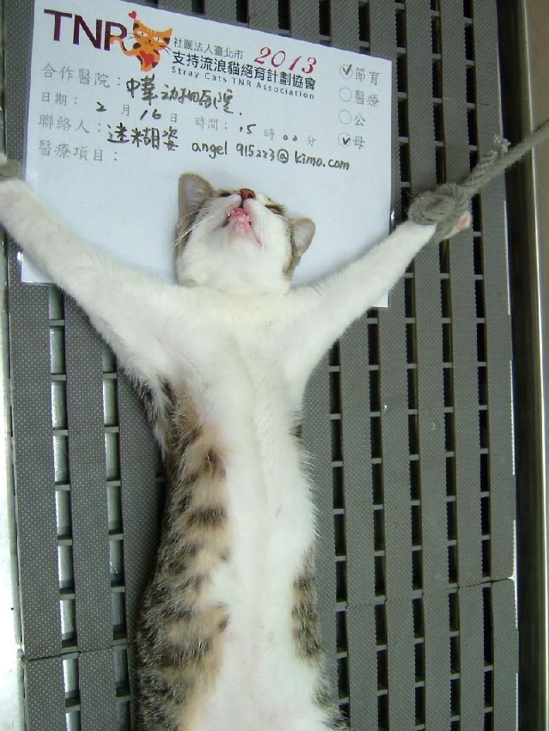 花色: 白底虎斑 誘捕地點: 花蓮收容所