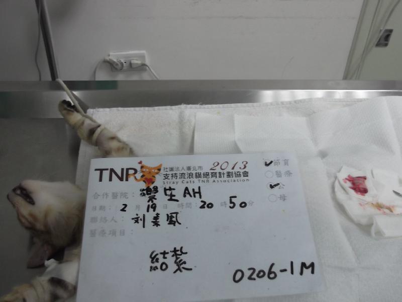 這是農曆年前到壽山 收容所領出來的貓咪在樂生動物醫院結紮12之1, 此貓咪有發燒與前掌腫會移到醫助申請. 感謝所有協助與捐款的朋友, 讓這些貓咪有活下來的機會. <0206-1M>