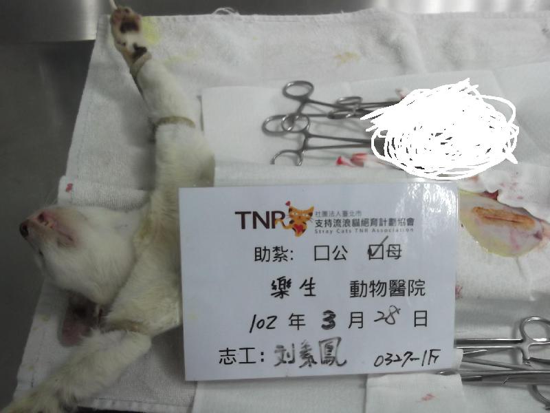 結紮醫院: 樂生動物醫院 結紮費用: 1200
